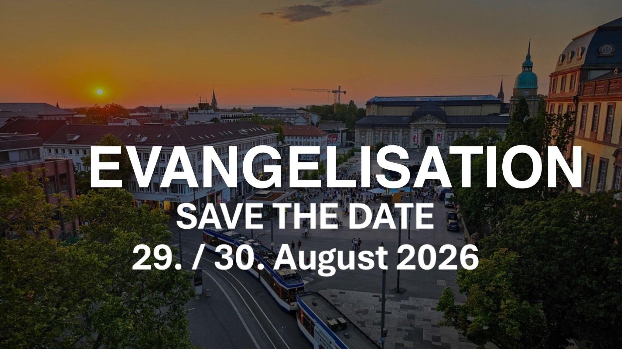 Dieses Jahr wollen wir einmal mehr unsere Stadt mit der guten Botschaft von Jesus erreichen. Wir führen an diesen zwei Tagen eine große Evangelisation auf dem Friedensplatz in Darmstadt durch. Deshalb trage dir dieses Datum schon einmal ein. Weitere Infos folgen.